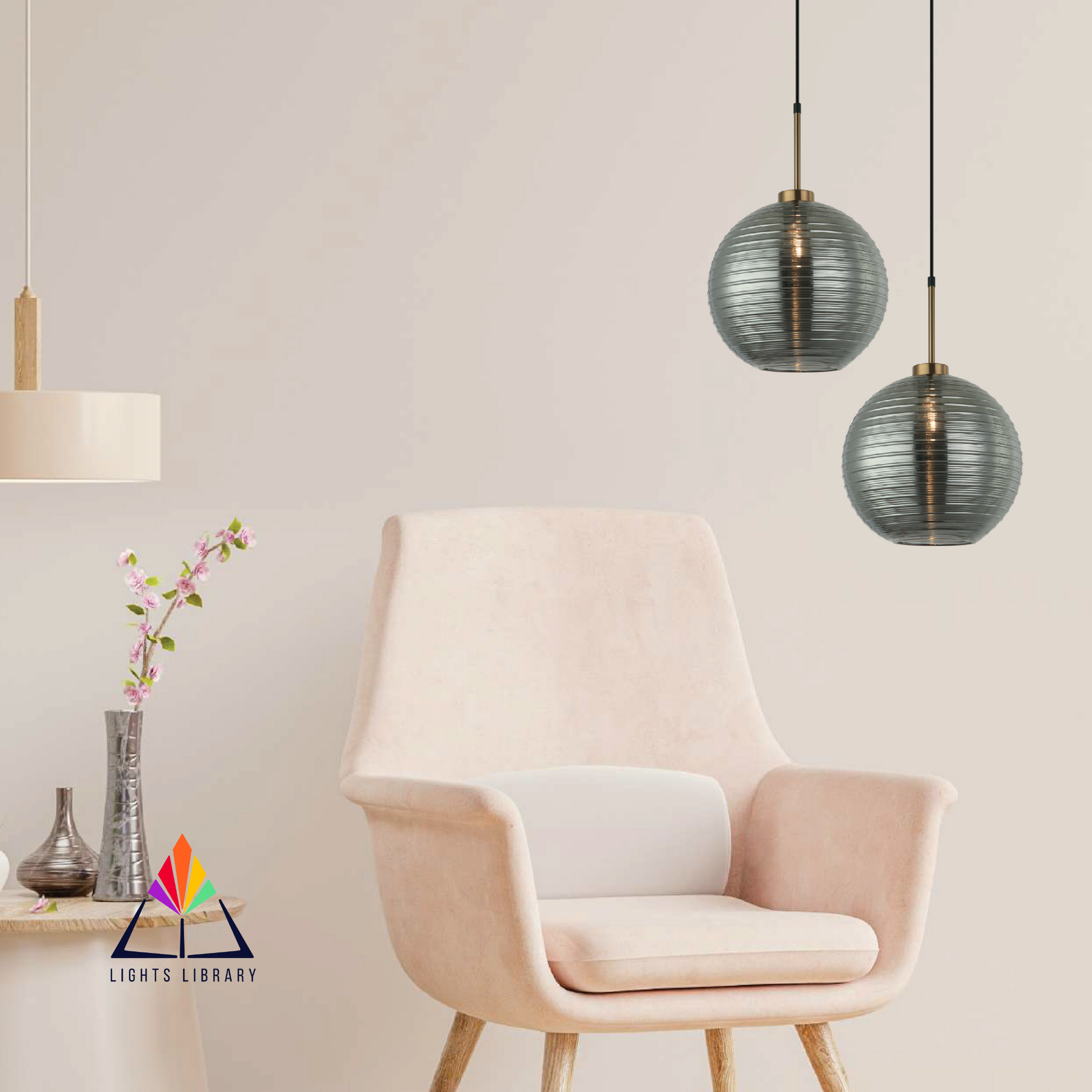 The Dance of the Dusk Hanging Light in Amber and Smokey combines antique charm with modern elegance, offering radiant LED illumination.