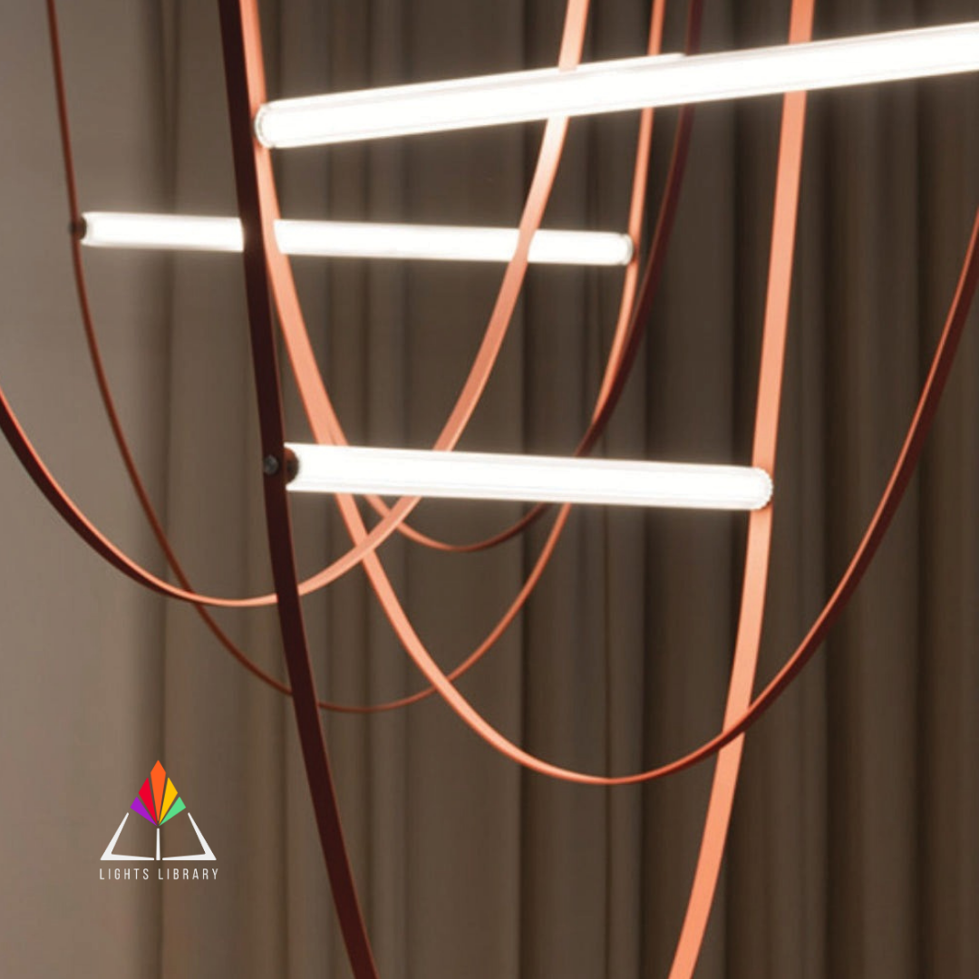 Elevate your space with the Luminous Strands chandelier, featuring sleek LED tubes suspended by elegant leather straps. This artistic fixture creates a floating effect, blending contemporary design with soft, ambient lighting. Perfect for high ceilings, luxury interiors, and statement dining areas, it redefines modern elegance with effortless sophistication.