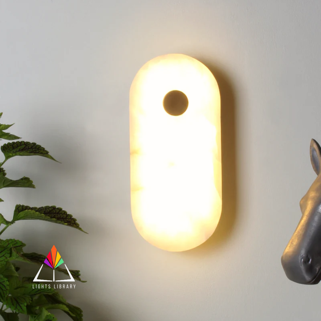 A contemporary wall decor piece crafted from smooth white marble, accented with a brass centerpiece, radiating elegance and minimalism.